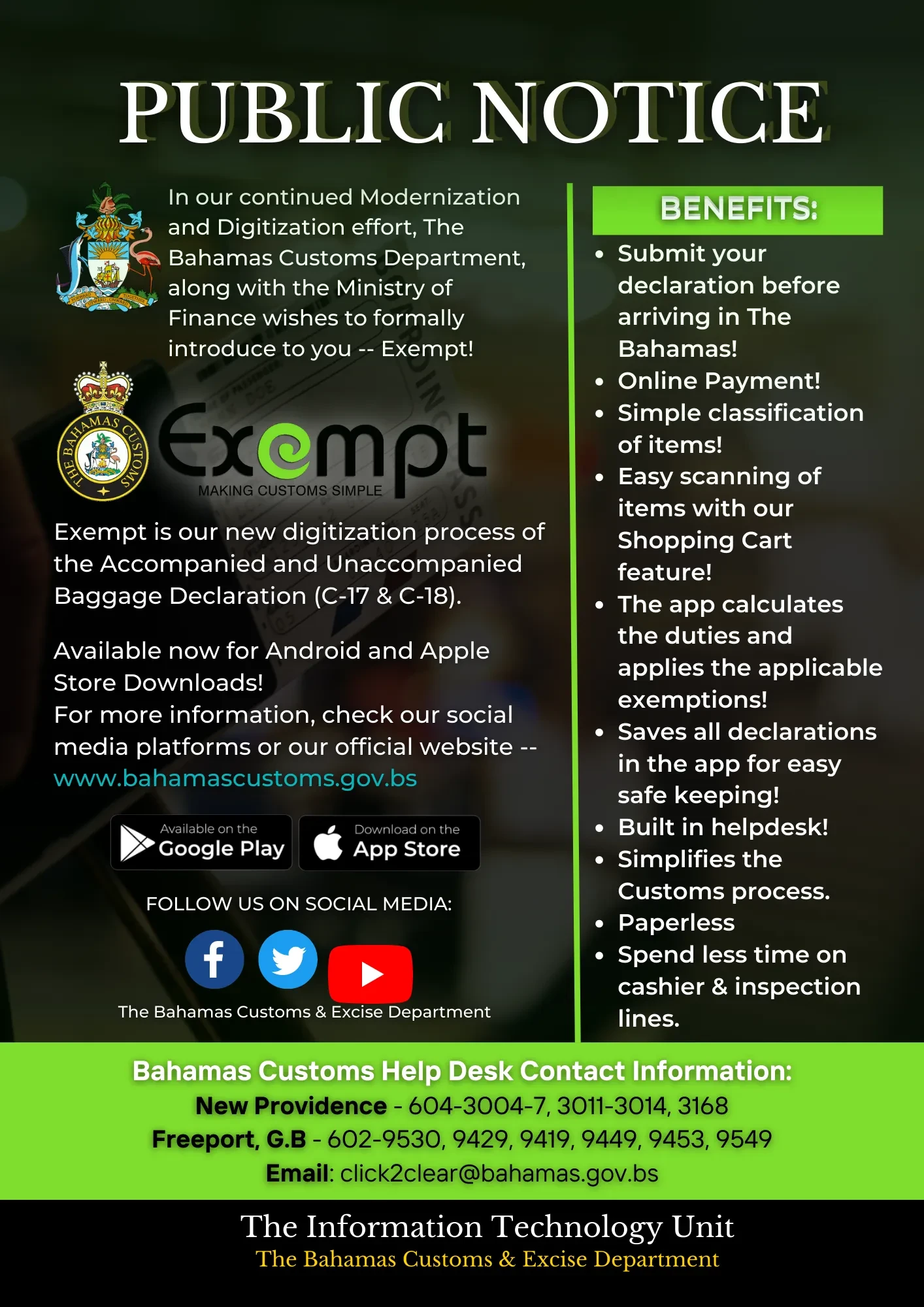 Exempt- Bahamas Customs New Online Baggage Declaration App